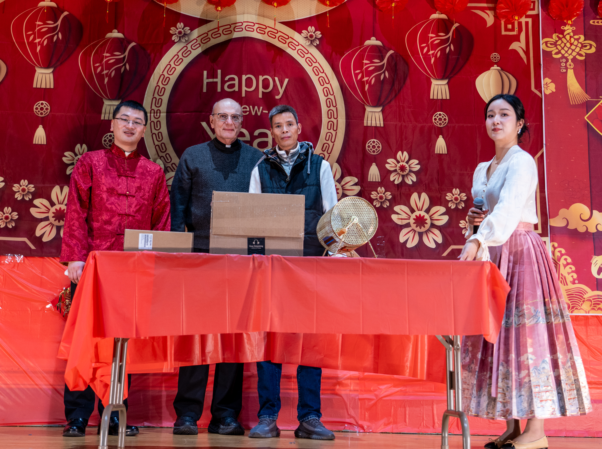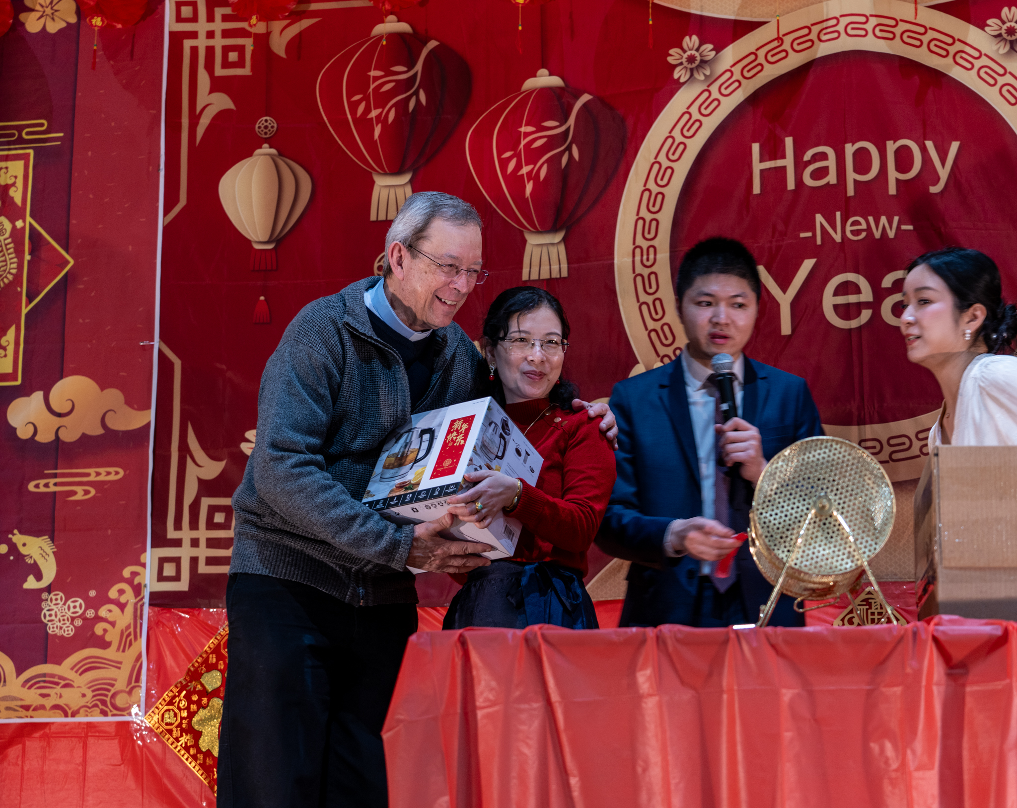 永助圣母堂《新春联欢晚会》感赋瑞雪梅花值迓年,履端团拜意拳拳。传扬圣子喧锣鼓,赞颂慈亲激管弦。笑逐颜开情不禁,眉飞色舞乐无边。亲临永助沾膏雨,荣耀天乡祝在先。陈若翰