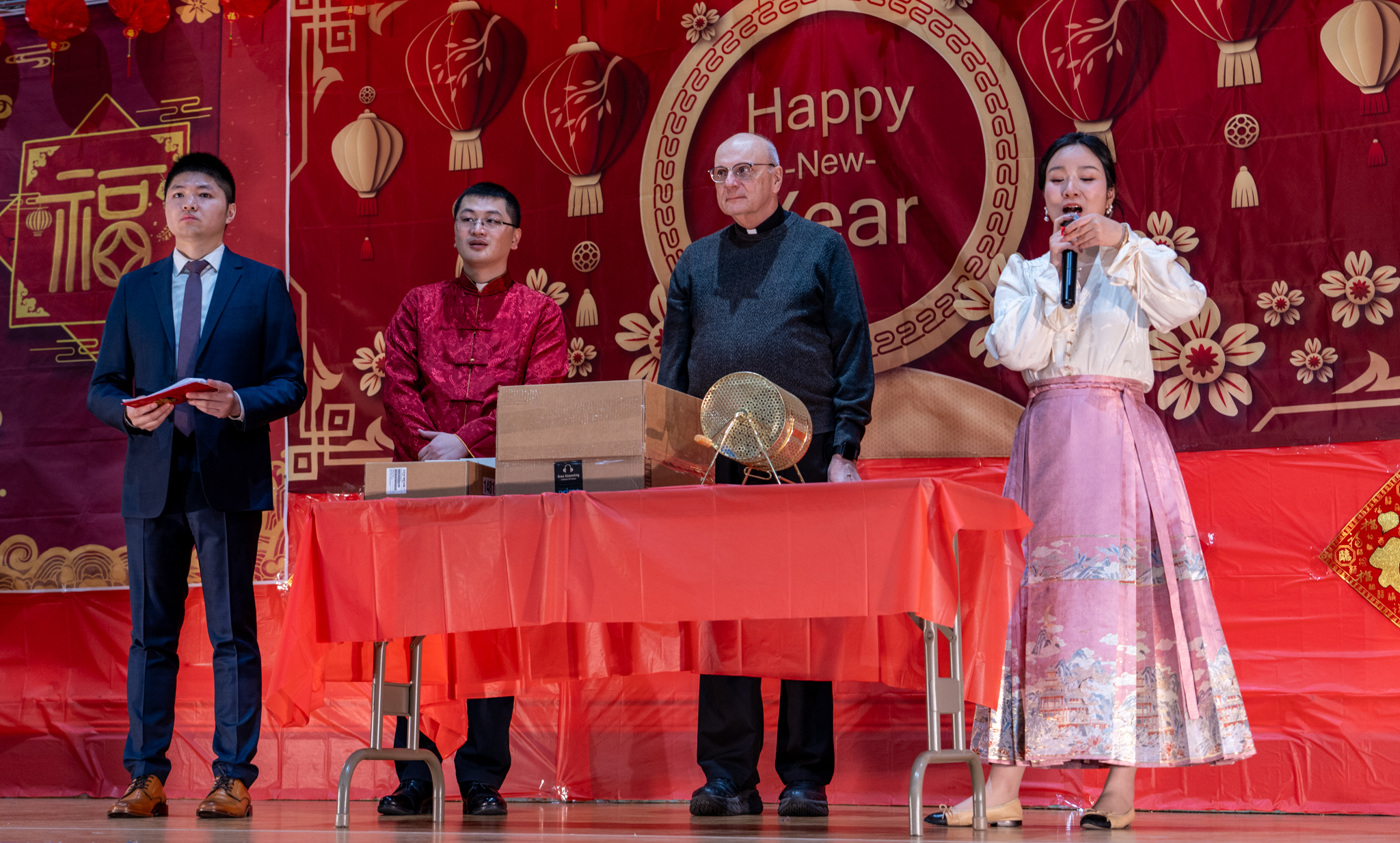 永助圣母堂《新春联欢晚会》感赋瑞雪梅花值迓年,履端团拜意拳拳。传扬圣子喧锣鼓,赞颂慈亲激管弦。笑逐颜开情不禁,眉飞色舞乐无边。亲临永助沾膏雨,荣耀天乡祝在先。